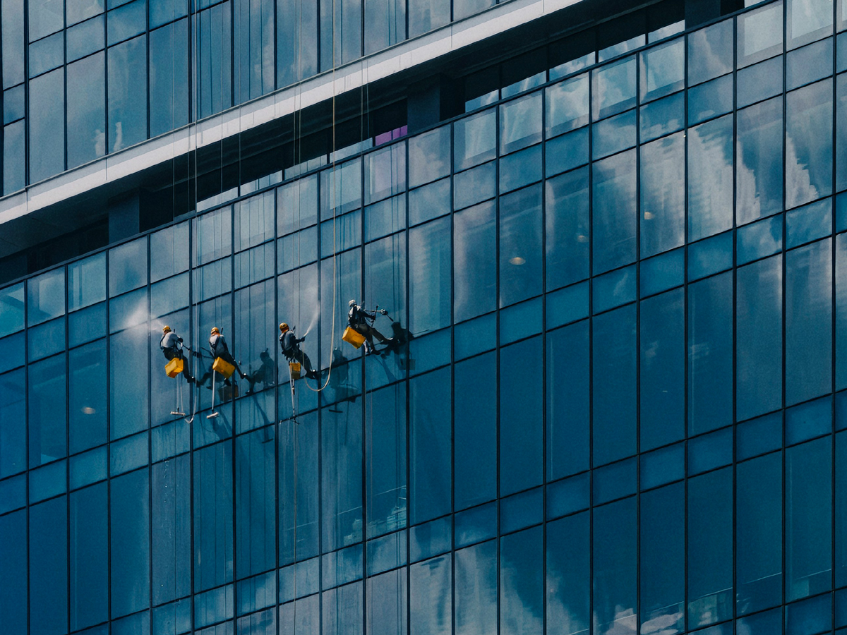 Specialized cleaning for tall buildings using safe scaffolding and rope-access techniques.